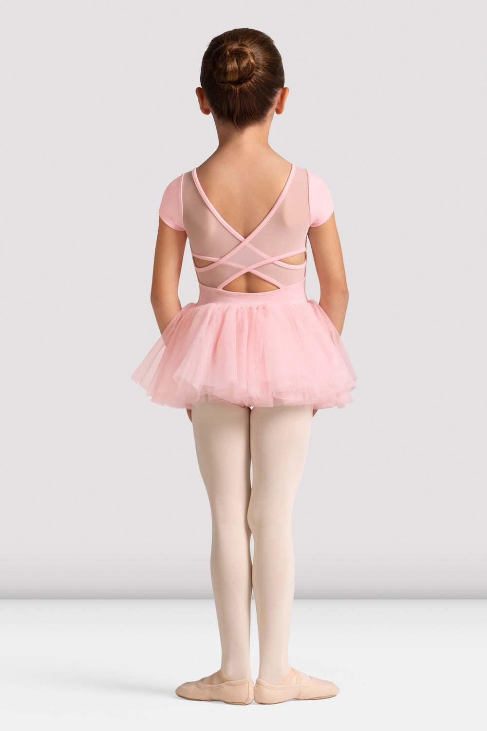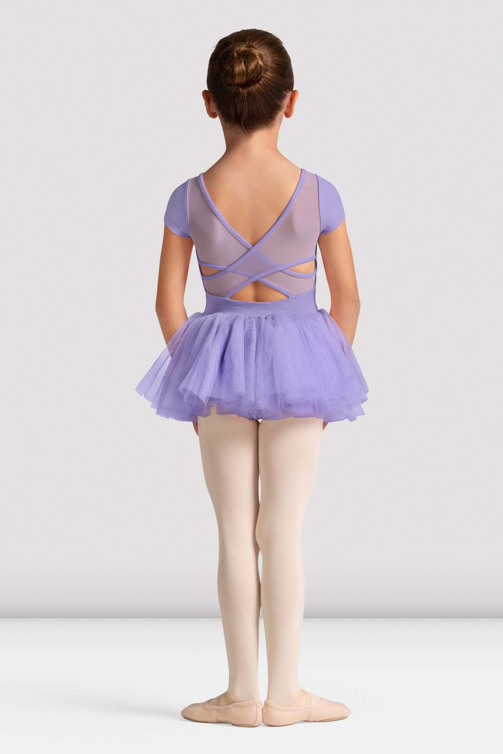Super sweet cap sleeve tutu leotard CL20007 dress for girls features soft scoop front with a sweetheart necklines and a beautiful mesh criss cross back. It also has an attached tutu skirt crafted with full layers of voluminous tulle for a traditionally full look.